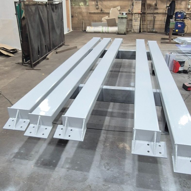 These are components from our third Job for a repeat customer, primer painted in house, did we mention one of us used to spray paint for a living? the customer has seen the quality of our work and sent us more, safe in the knowledge that we now have welding procedure qualifications to BS EN ISO 15614 and all our welders have passed welder qualification to BS EN ISO 9606, The first stages in our quest to become a BS EN 1090 compliant fabrication company.